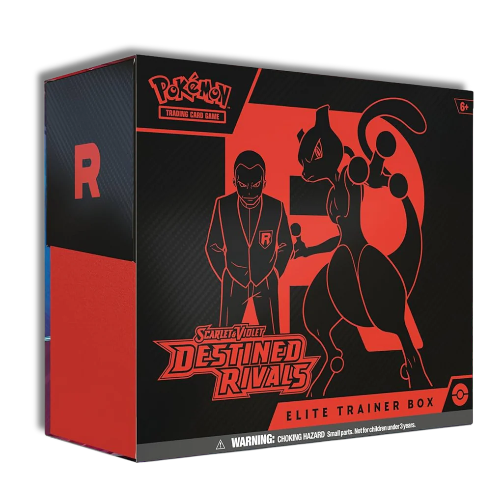 Incluye nueve paquetes de refuerzo de Scarlet & Violet—Destined Rivals, una carta promocional y varios accesorios de juego.